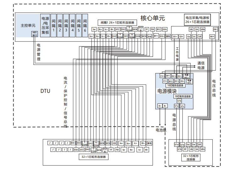 终端采用模块化可扩展设计,由核心单元、电源模块和电池组构成;各模块采取标准化设计;模块直接通过标准化线束连接。